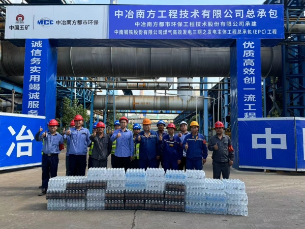 面對持續(xù)數(shù)月的高溫酷暑,緊鄰生產(chǎn)區(qū)域的煤氣高效發(fā)電三期項目與蒸汽利用效率提升工程面臨更為嚴(yán)峻的施工挑戰(zhàn)。為有效應(yīng)對極端天氣,確保施工安全與進度,9月5日,項目建設(shè)單位廣東中南鋼鐵股份有限公司能環(huán)部攜手中南股份工會,精心組織了一場“送清涼”慰問活動,以實際行動為奮戰(zhàn)在一線的建設(shè)者們送去夏日里的絲絲涼意與深切關(guān)懷?;顒赢?dāng)天,能環(huán)部副部長孫普及項目安全負(fù)責(zé)人、專業(yè)負(fù)責(zé)人等領(lǐng)導(dǎo)深入項目現(xiàn)場,為參建單位的管理人員和施工人員發(fā)放了防暑降溫物資,用實際行動傳遞了能環(huán)部對協(xié)力單位的深切關(guān)懷與支持。