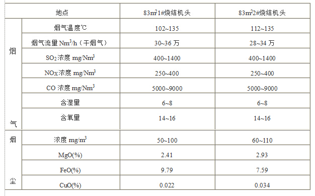 1)柳鋼燒結(jié)煙氣、煙塵分析數(shù)據(jù)
